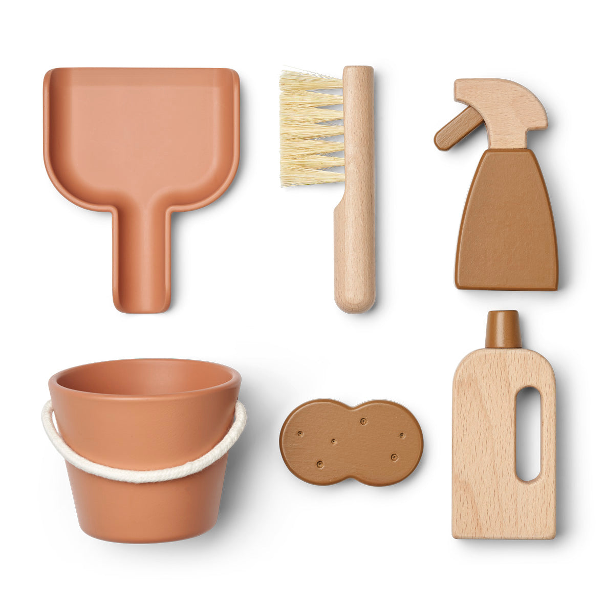 Das Aufräumen hilft Ihrem Kind, seine Fein- und Grobmotorik zu entwickeln. Das Kimbie Reinigungsset