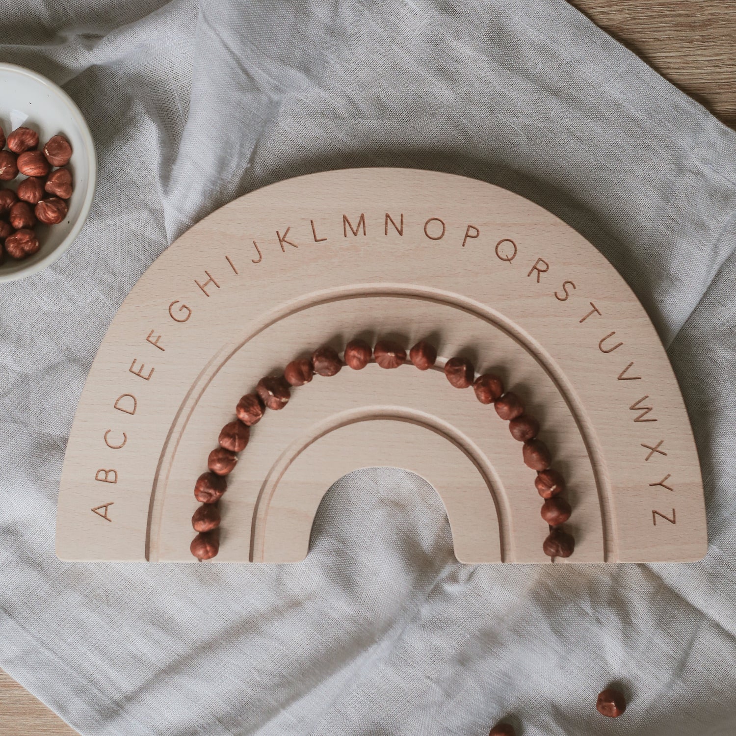 Eulenschnitt Frühstücksbrett "Regenbogen ABC"