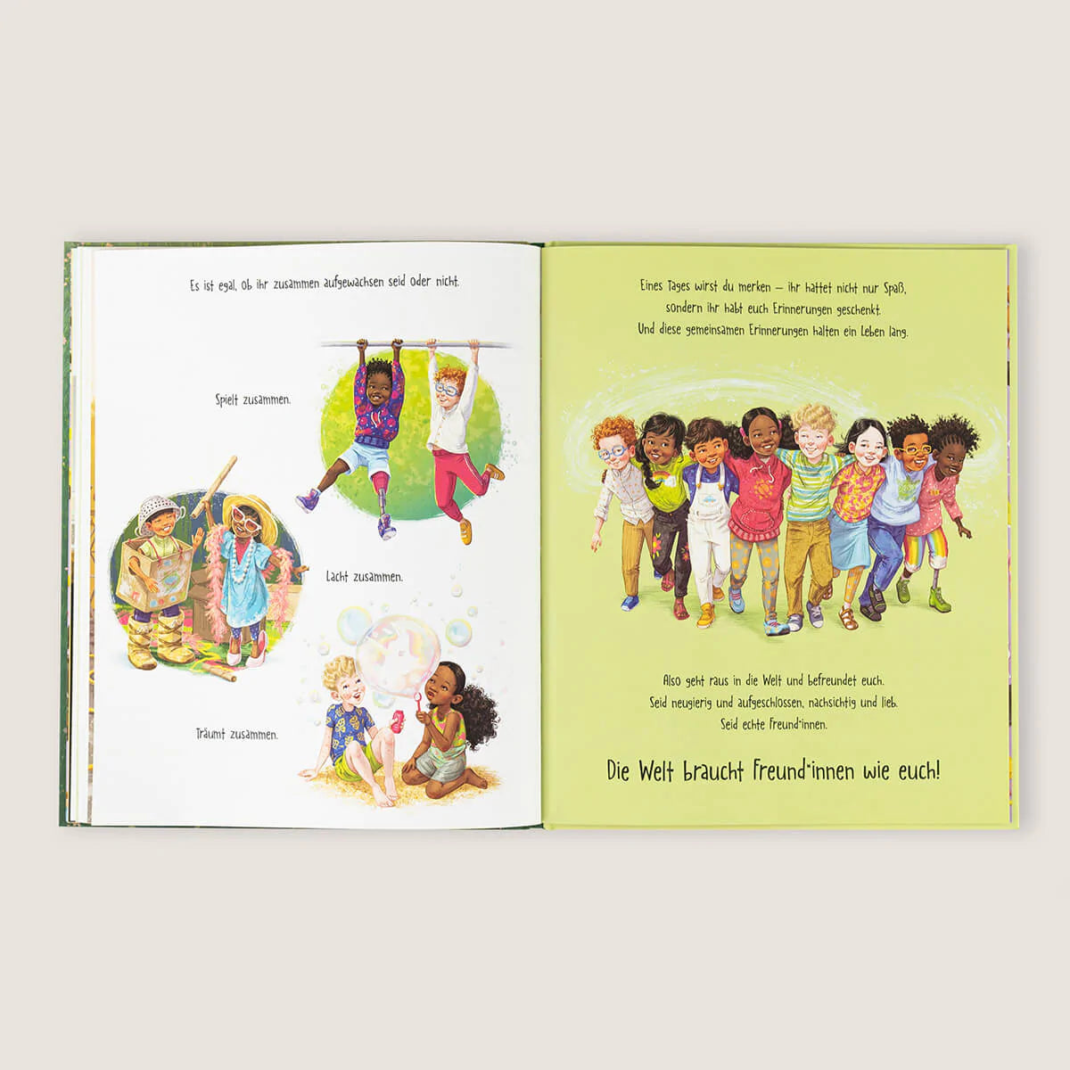 Dieses großartige Buch feiert Freundschaft und all die Arten, auf denen Kinder befreundet sind: um miteinander zu spielen und zu reden, um sich gegenseitig zu trösten oder anzufeuern, um einfach füreinander da zu sein.