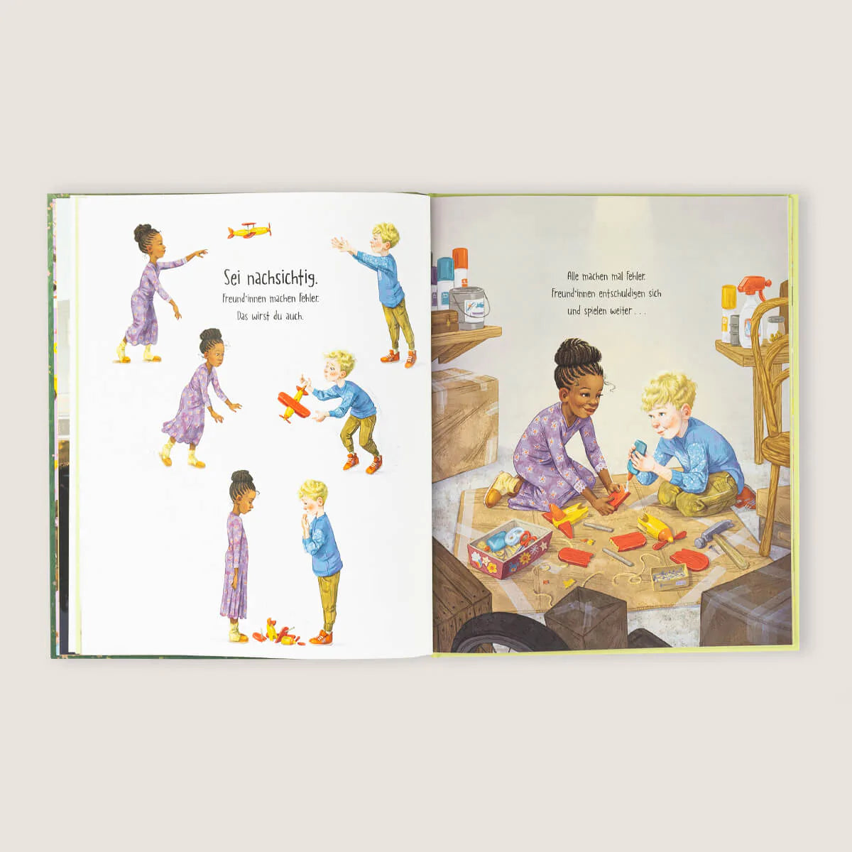 Es ist ein sanfter Ratgeber für die ersten sozialen Beziehungen und ermutigt Kinder, Freund*innen zu finden und Freund*innen zu sein.