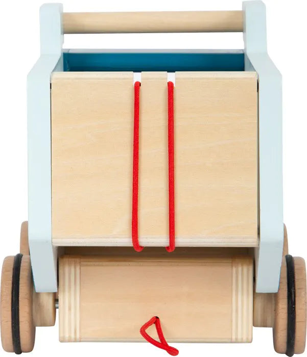Ein Kipplastwagen, der es in sich hat! Aus stabilem Holz gefertigt, bringt dieser robuste Spiel-LKW jede Menge Lern- und Spielspaß zur Baustelle im Kinderzimmer. Die Mulde lässt sich komplett kippen und trainiert mittels Gummibandverschluss spielerisch die Feinmotorik. Für die Extraportion Aufmerksamkeit sorgt das Spielfahrzeug, wenn der Fahrer und die Mulde beim Fahren lustig auf und ab wippen. Mit gummierten Rädern. Das kompakte, hochwertig verarbeitete Holzfahrzeug in modernem Design und kontrastreichen Farben kann als Spiel-, Schiebe- oder Nachziehauto genutzt werden und ist für kleine Kinderhände perfekt geeignet! Lauflern- und Motorikschulung inklusive! Abgerundete Kanten und sanfte Formen sorgen für eine angenehme Haptik. Mit gummierten Rädern und Schlaufe an der Rückseite zur Befestigung weiterer Fahrzeuge.