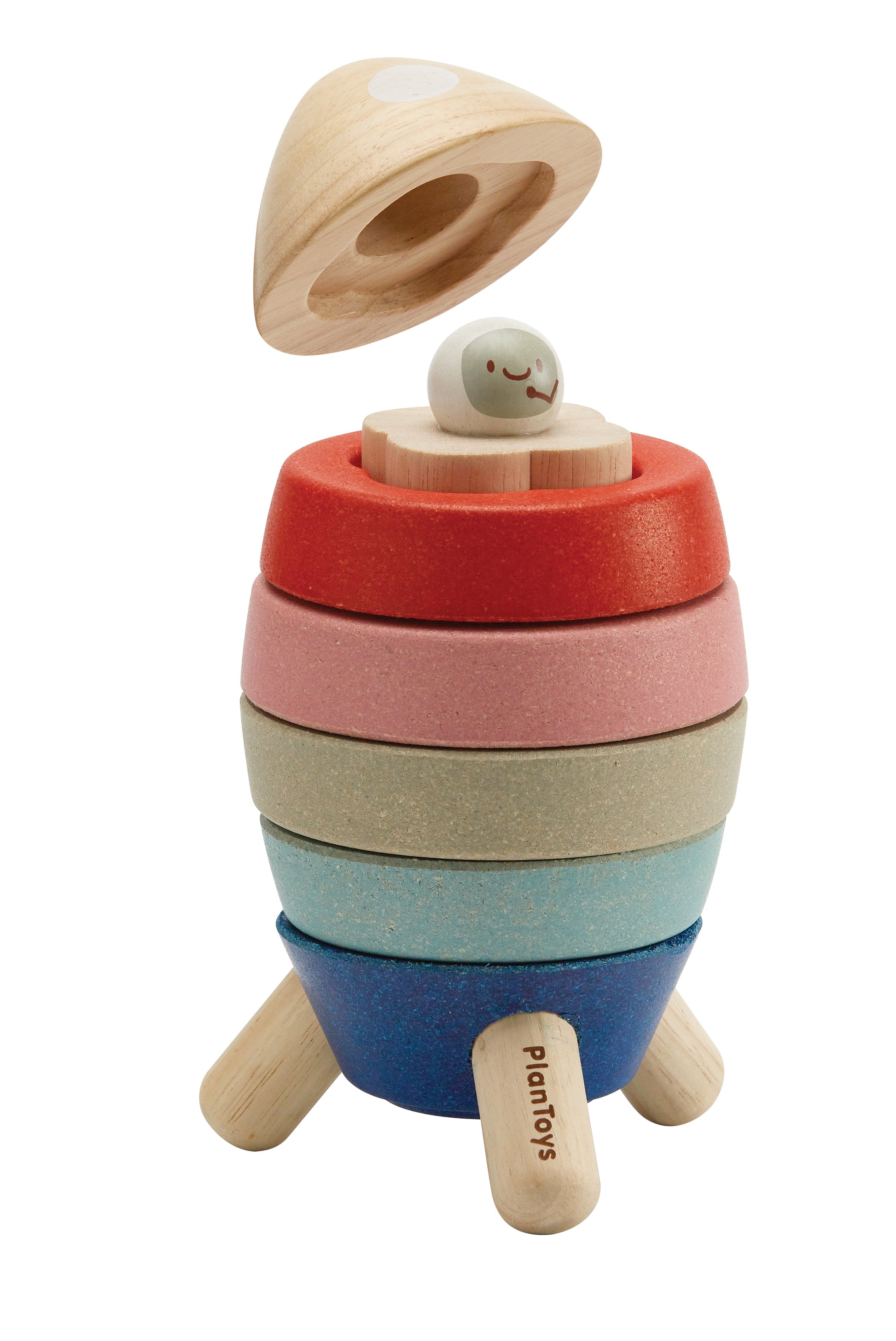 Schnell weckt die herrliche PlanToys Stapelrakete das Interesse der Kleinen. Die fröhlich bunten Scheiben und verschiedenen geometrischen Formen stellen eine kreative Herausforderung für neugierige Entdecker dar. Ziel ist es, alle PlanToys Elemente passend zusammenzusetzen, um die fertige Figur zu erhalten. Und natürlich befindet sich ganz oben in der Rakete ein Platz für den abenteuerlustigen Astronauten.
