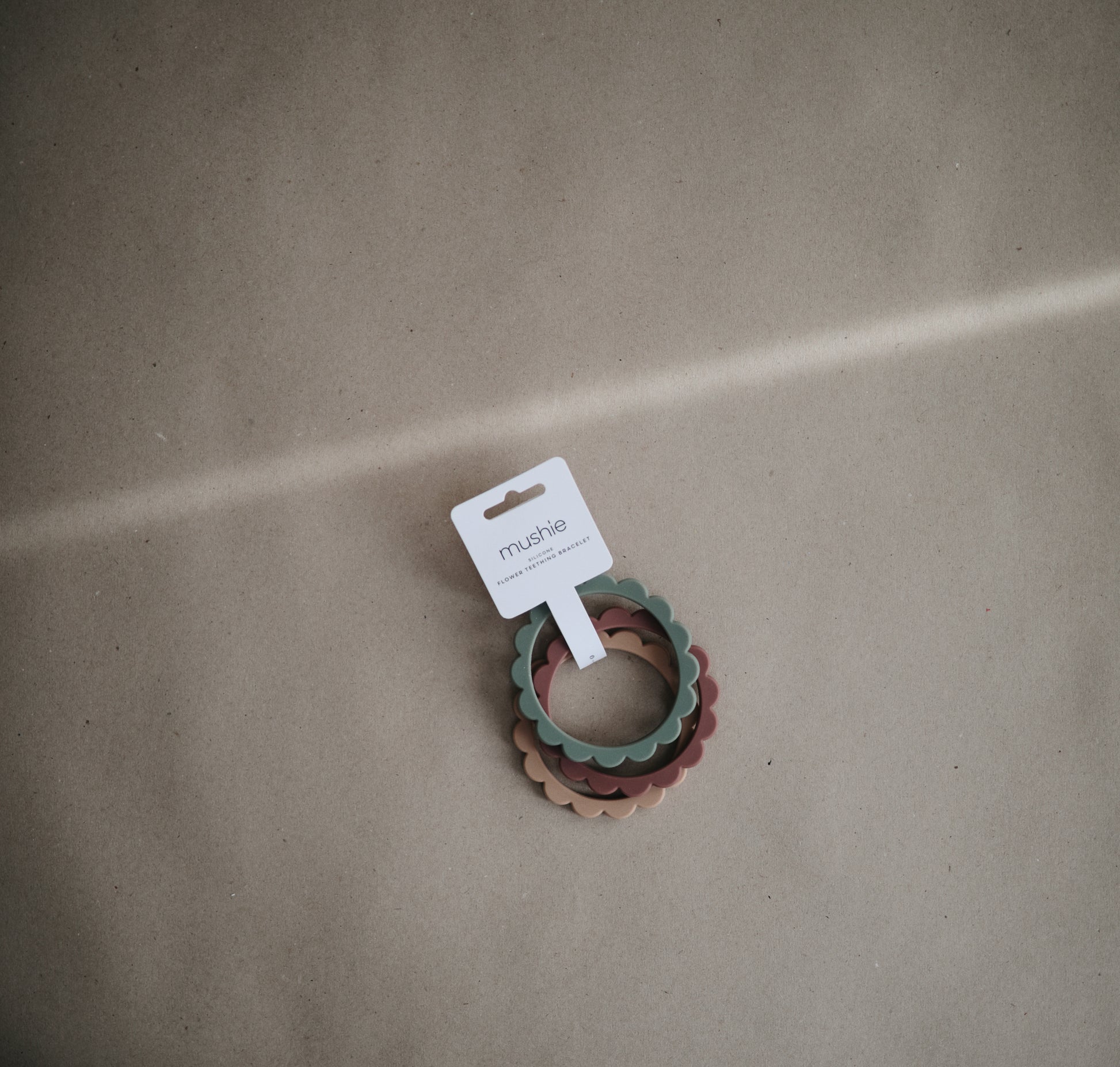 Mushie Beißring & Armband "Flower Berry / Dried Thyme / Natural" 3er Set