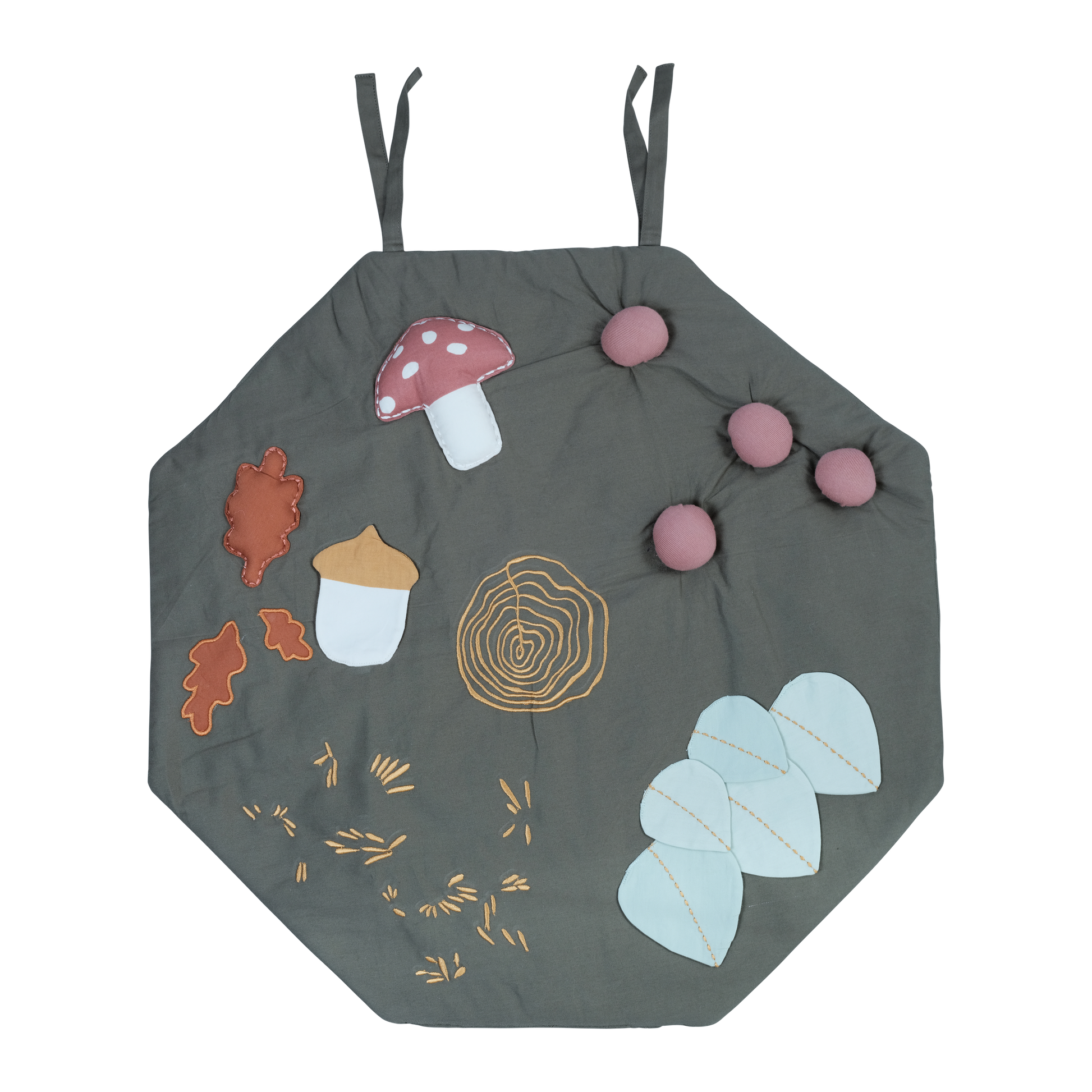 Schöner Fabelab Spielteppich mit Wald - Thema. Die Fabelab Krabbeldecke ist leicht wattiert und hat verschiedene Dinge, die die Kleinen erkunden können. Sie ist faltbar und perfekt für unterwegs oder auf Reisen