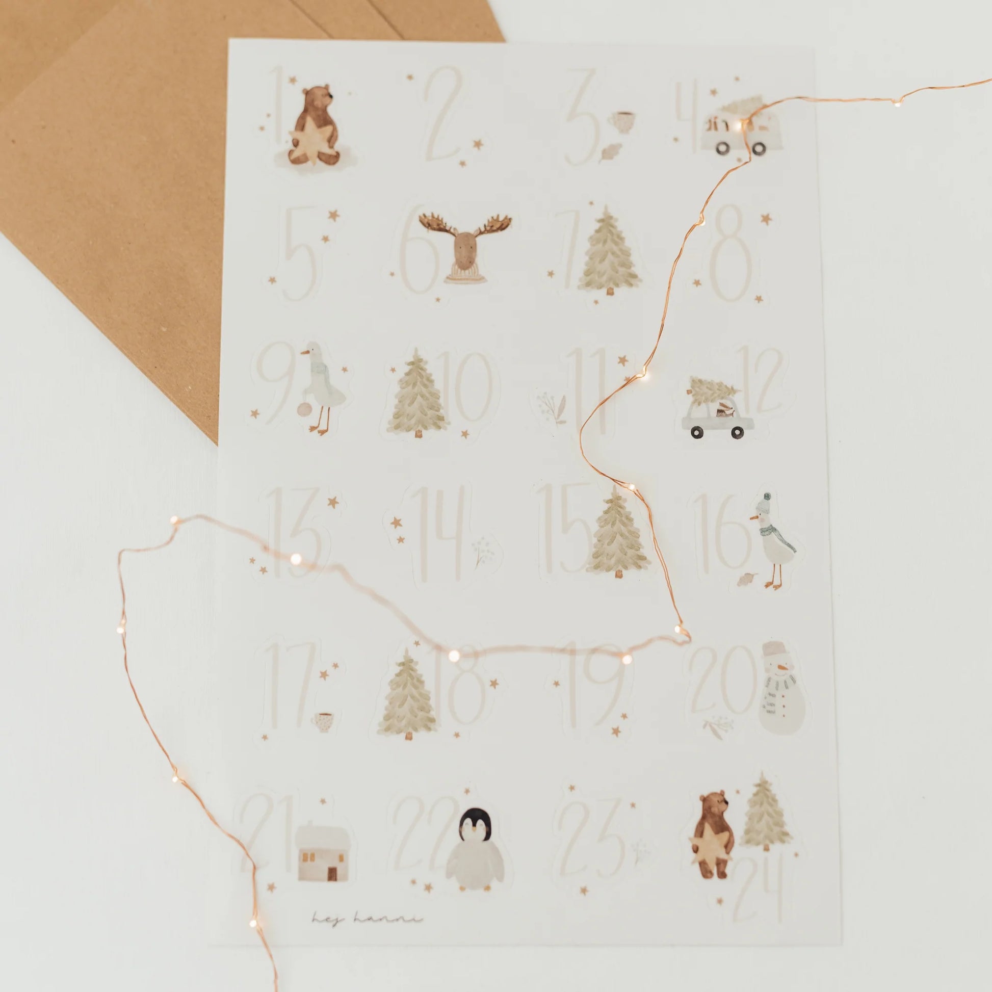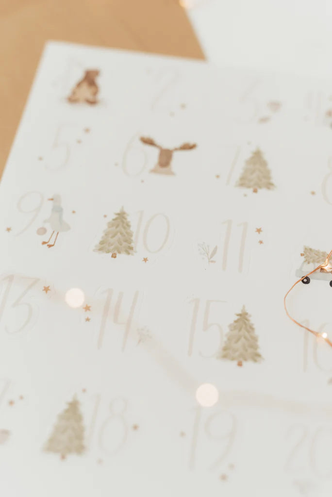 24 kleine Adventskalendersticker auf einem Bogen im Format 20x30cm. Die Sticker sind vegan und aus venyl. Sie haften auf ganz vielen Oberflächen - dir sind also in der Gestaltungsfreiheit keine Genzen gesetzt. Egal woraus du deinen Adventskalender basteln magst - mit den kleinen Stickern kannst du schnell und schön die Zahlen 1-24 aufbringen.