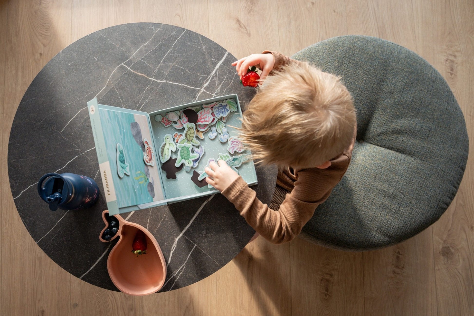 Das praktische Magnet-Spiel mit den farbenfrohen, handgezeichneten Tieren trainiert die Feinmotorik Deines Kindes und bietet Ruhe und Entspannung nach einem anstrengenden Tag.