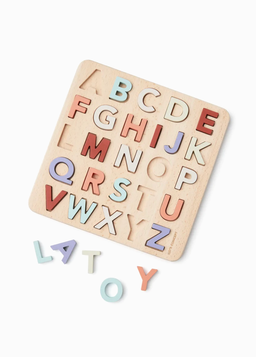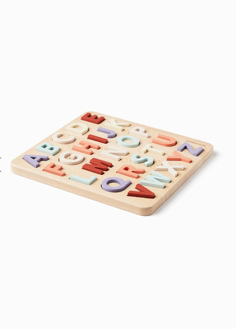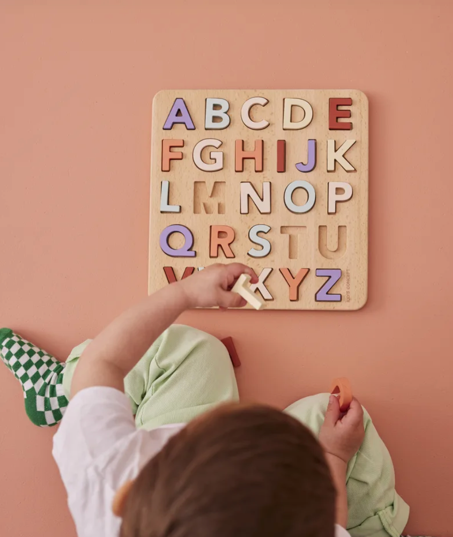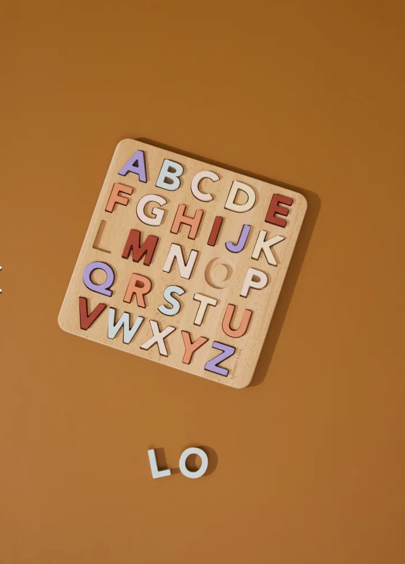 ABC-Puzzle aus FSC-zertifiziertem Holz mit den Buchstaben A bis Z. Auch erhältlich mit den Buchstaben A bis Ö. Du kannst die Buchstaben an ihren Platz im Puzzle legen oder sie zum Bilden von Wörtern verwenden. Das Puzzle fördert das logische Denken und unterstützt die Kids beim Erkennen von Formen. Indem das Kind die Buchstaben in der richtigen Reihenfolge legt, erlernt es deren Formen und die damit verbundenen Laute. Mithilfe der Puzzleteile kann das Kind einfache Wörter bilden und durch dieses Zusammenfügen von Buchstaben zu Sätzen und Texten besser Lesen und Schreiben lernen. Auch die Feinmotorik des Kindes wird geschult, wenn es mit den Buchstaben hantiert und sie auslegt. Kleine Gegenstände aufzunehmen und neu zu platzieren, trägt zur Verbesserung von Koordination und Fingerfertigkeit bei. Indem das Kind versucht, die einzelnen Buchstaben an ihren jeweiligen Platz im Puzzle zu setzen, lernt es nicht nur, Probleme zu lösen und logisch zu denken, sondern auch zu beobachten, bestimmte Muster zu erkennen und die Beziehungen zwischen den Buchstaben zu analysieren. Das Puzzle lädt zum Gespräch über Buchstaben und Laute ein und fördert so die Kommunikation von Kindern untereinander sowie jene zwischen Kindern und Erwachsenen.